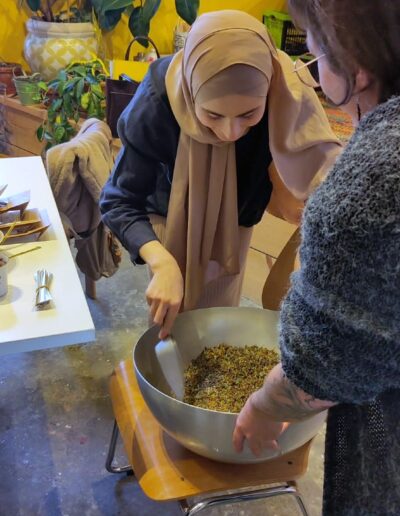 Espace Racines œuvre pour favoriser la rencontre, l’entraide et la mixité sociale par des temps d’accueil libre et par des activités culinaires multiculturelles portées et destinées prioritairement à des femmes de tous horizons.