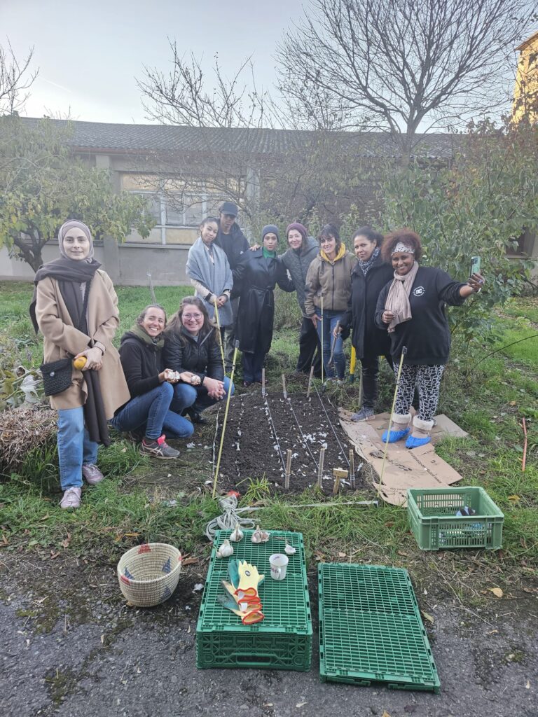 « Pendant le café entre femmes d’Espace Racines, on a fait un atelier jardinage avec Camille. Elle nous a montré comment cultiver l’ail, et on a fait la plantation dans le jardin de Sports 5.