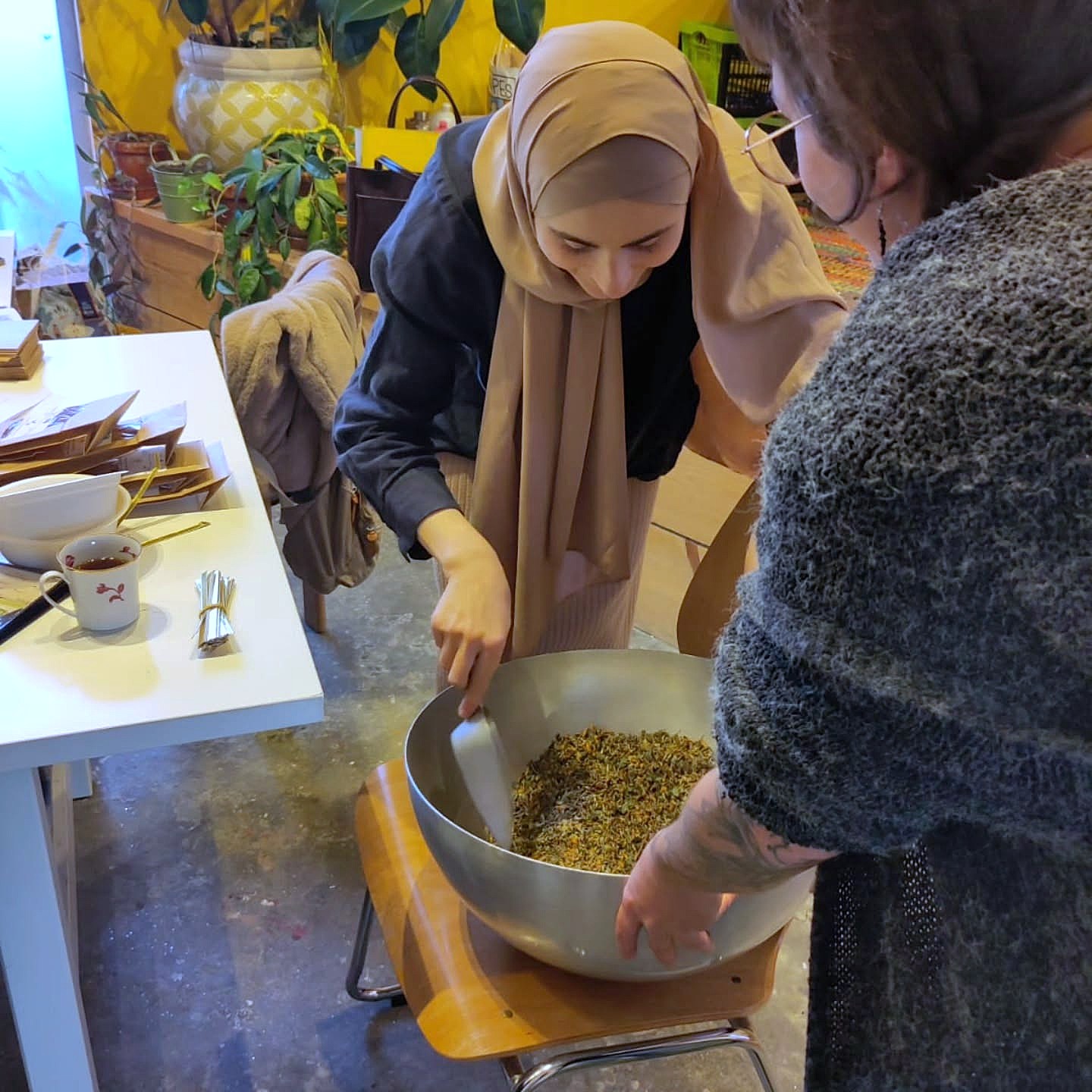 Sous la guidance bienveillante de Joane, les femmes présentes ont exploré l’art de créer des tisanes délicieuses, alliant bien-être et partage.