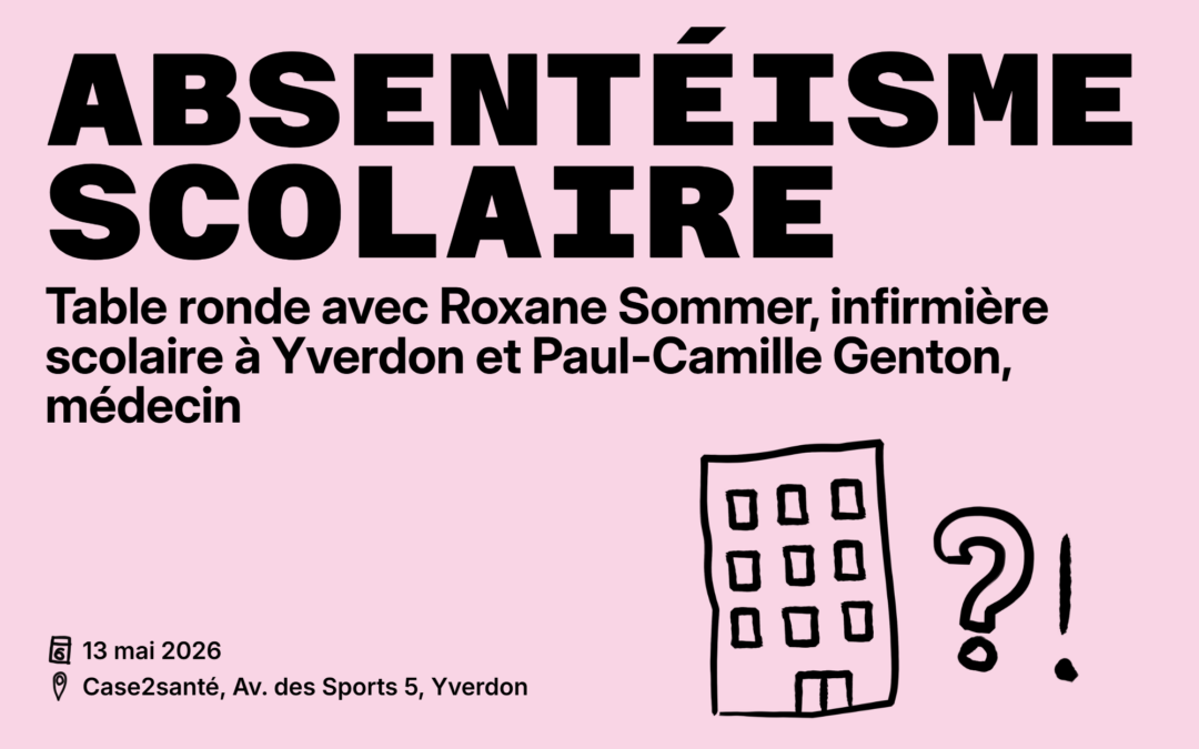 La prochaine soirée santé de Case2santé aura lieu le mercredi 13 mai à 19h, avec la présence de Roxane Sommer, infirmière scolaire à Yverdon & Paul-Camille Genton, médecin à la Division interdisciplinaire de santé des adolescents (DISA) au CHUV.